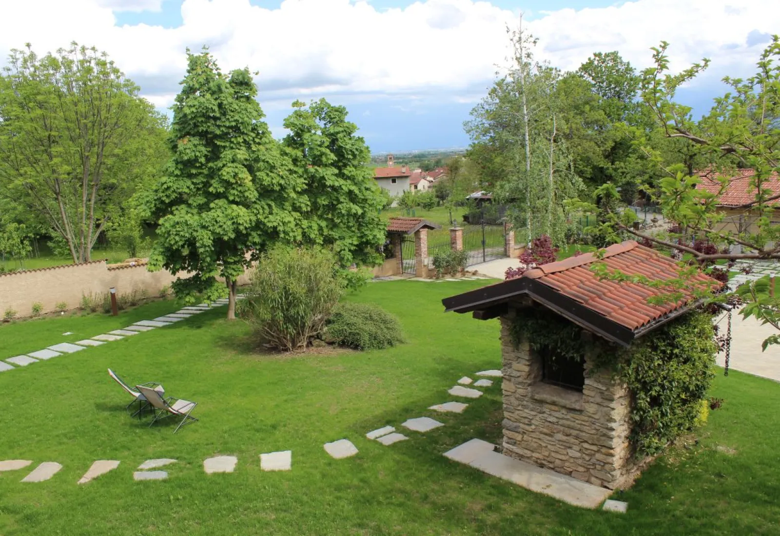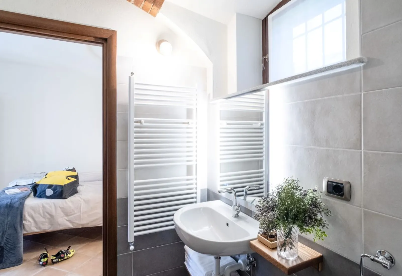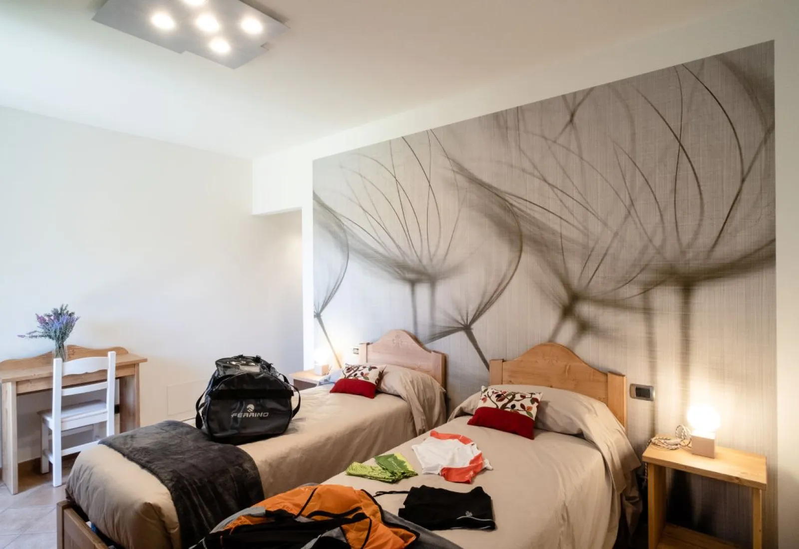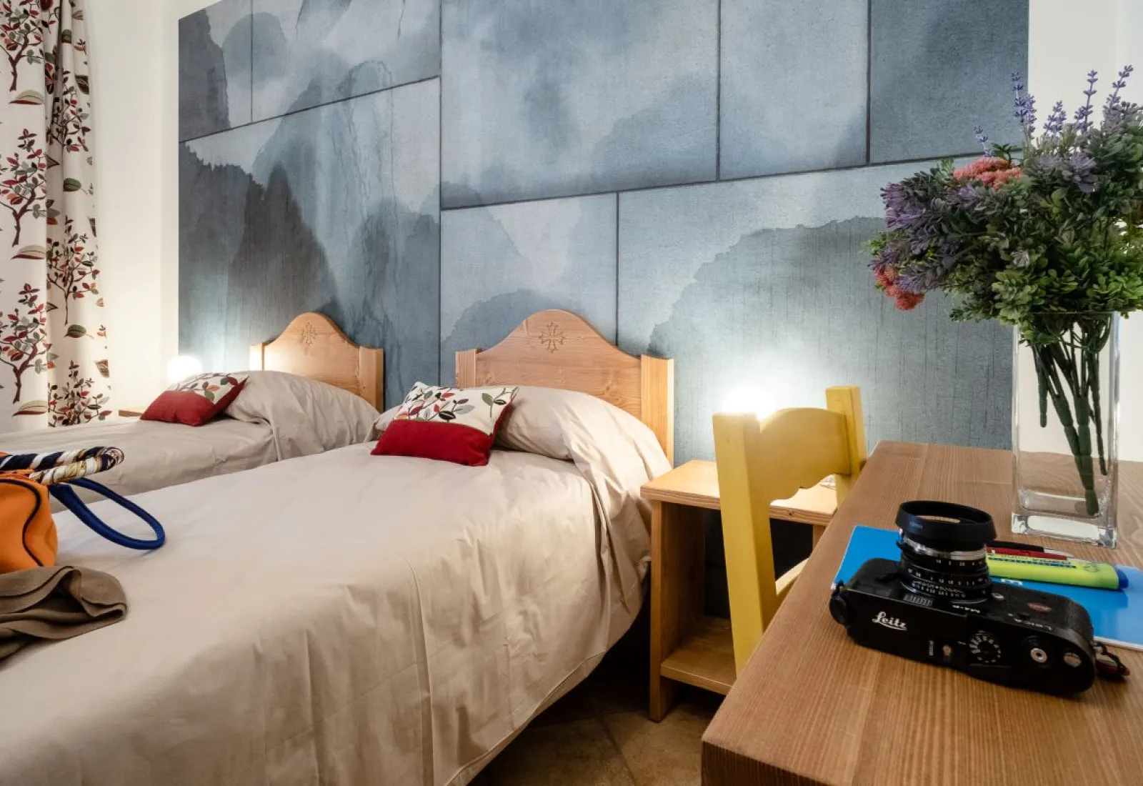 dès 50 € par nuitOn accède à la chambre RUGIADA par un petit palier. Il s’agit d’une chambre double confortable avec deux lits simples ou un lit double, donnant sur le jardin. La chambre est adjacente à BOSCO, une autre chambre double avec deux lits simples ou un lit double, elle aussi avec vue sur le jardin.