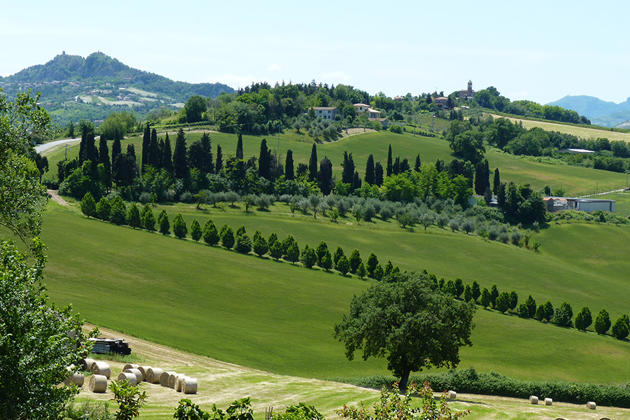 Du sommet du Carpegna, on dégringole à grande vitesse vers Pennabili. Et de la vallée, après quelques kilomètres on grimpe à Serre di Maiolo en passant par San Leo, l’un des plus beaux bourgs d’Italie qui se dresse sur un éperon presque totalement infranchissable, dans la vallée du fleuve Marecchia où y accéder par une seule route creusée dans les rochers. Une courte ascension mais ardue avec de longs passages avec 10% de pente.